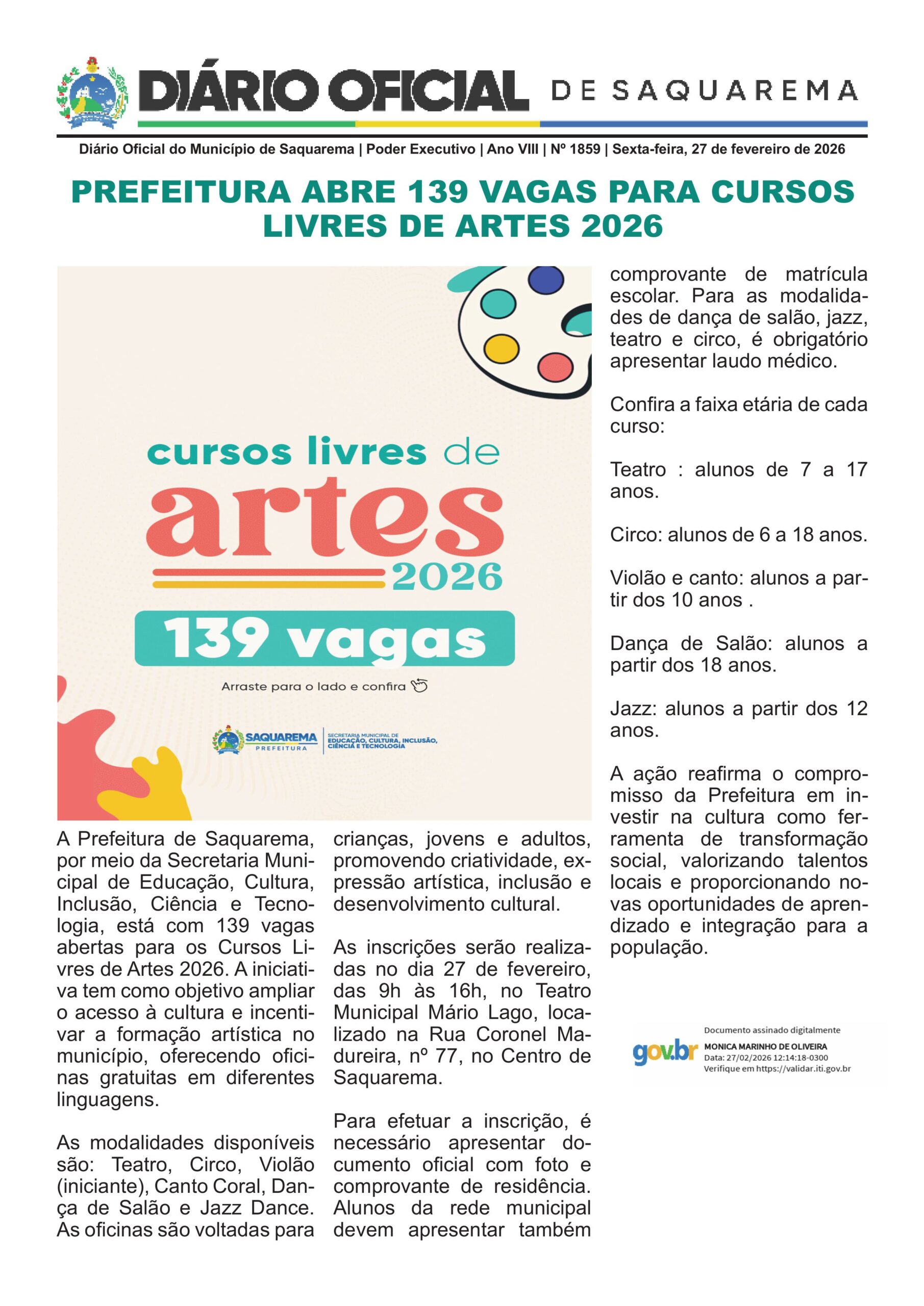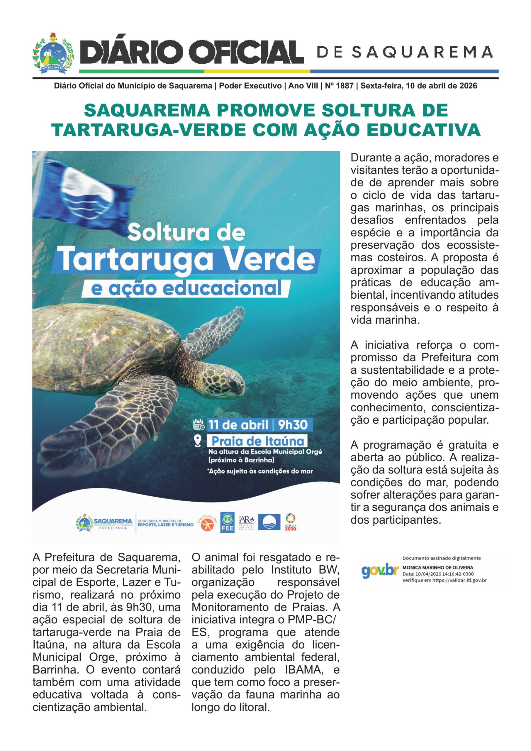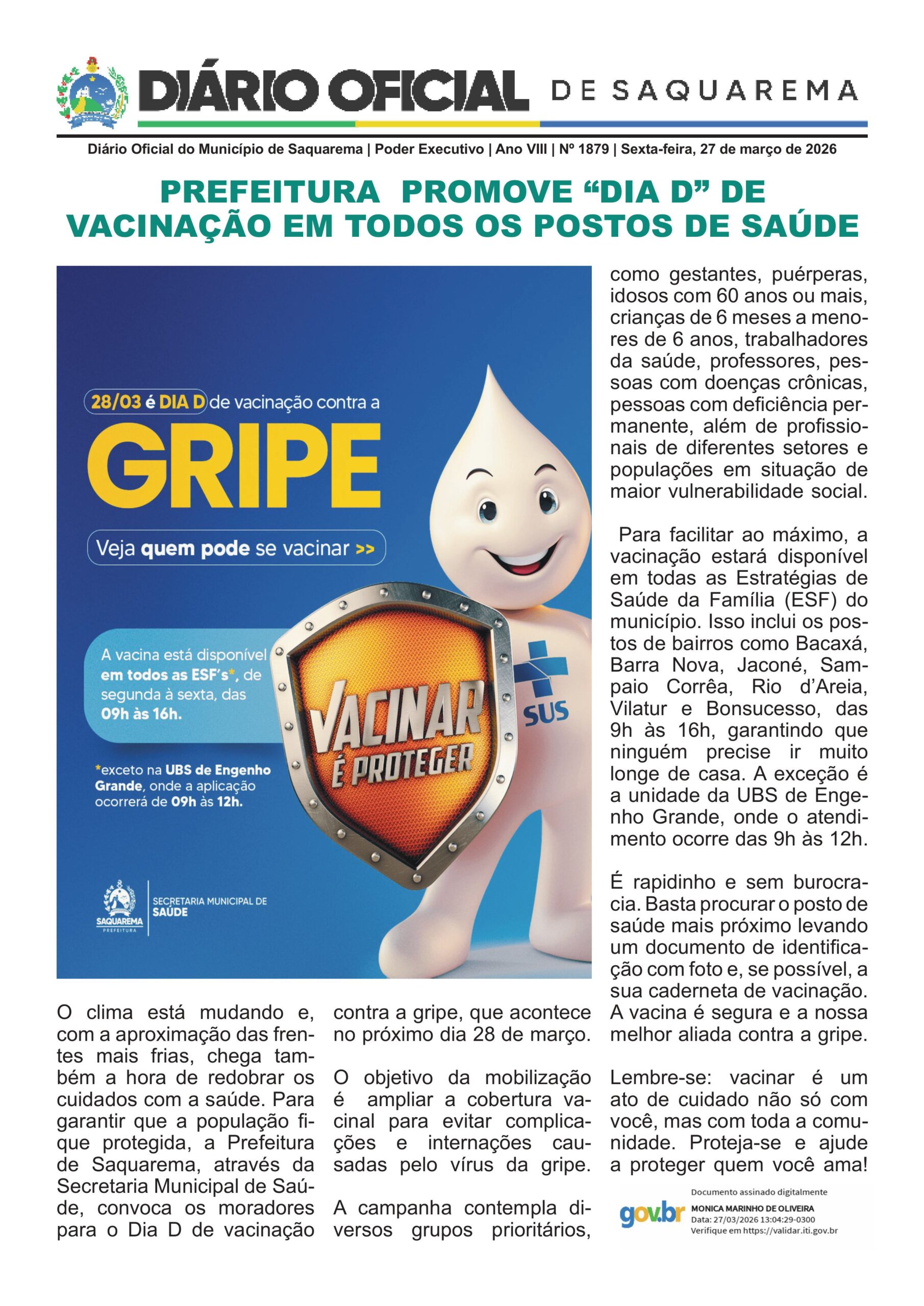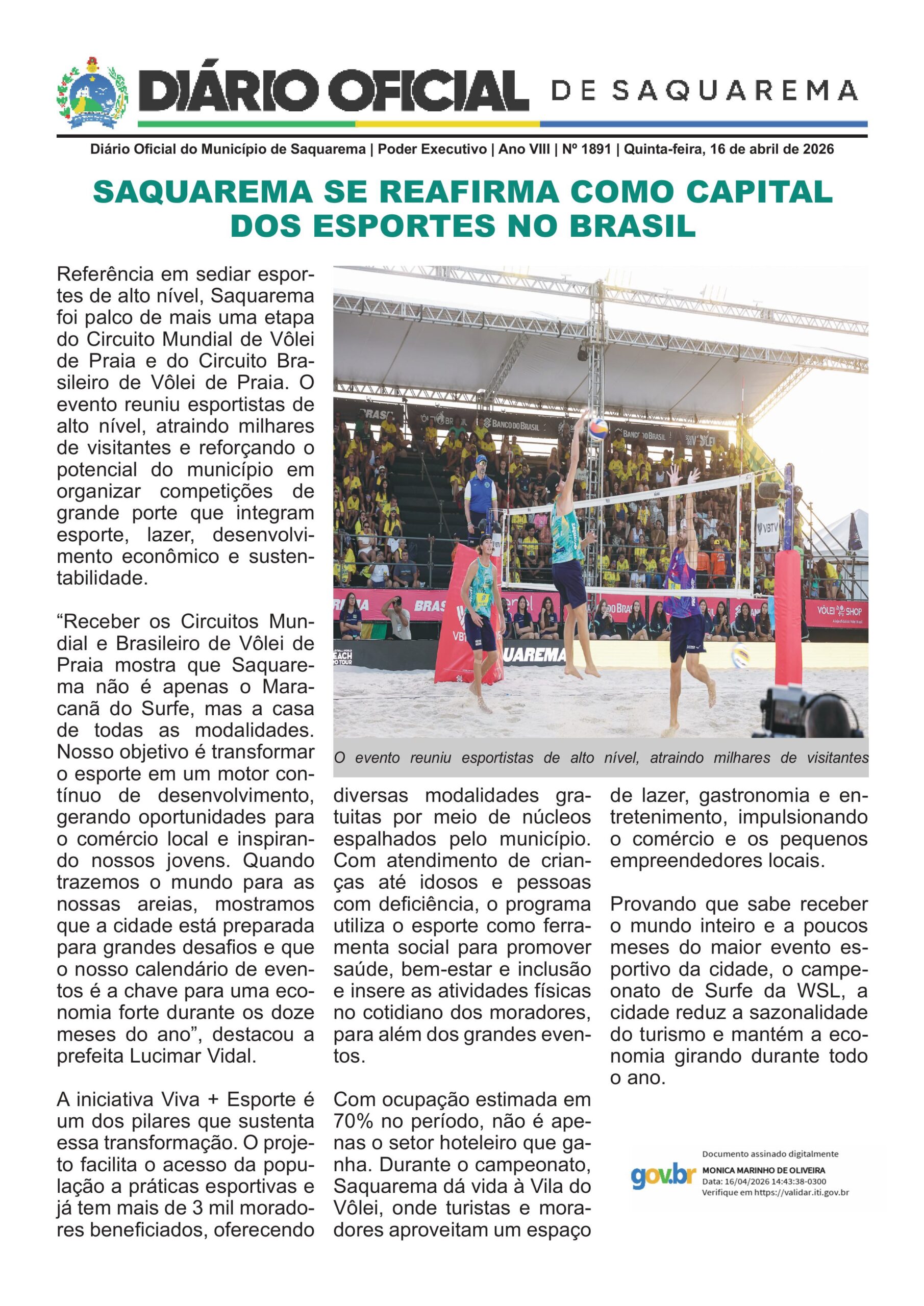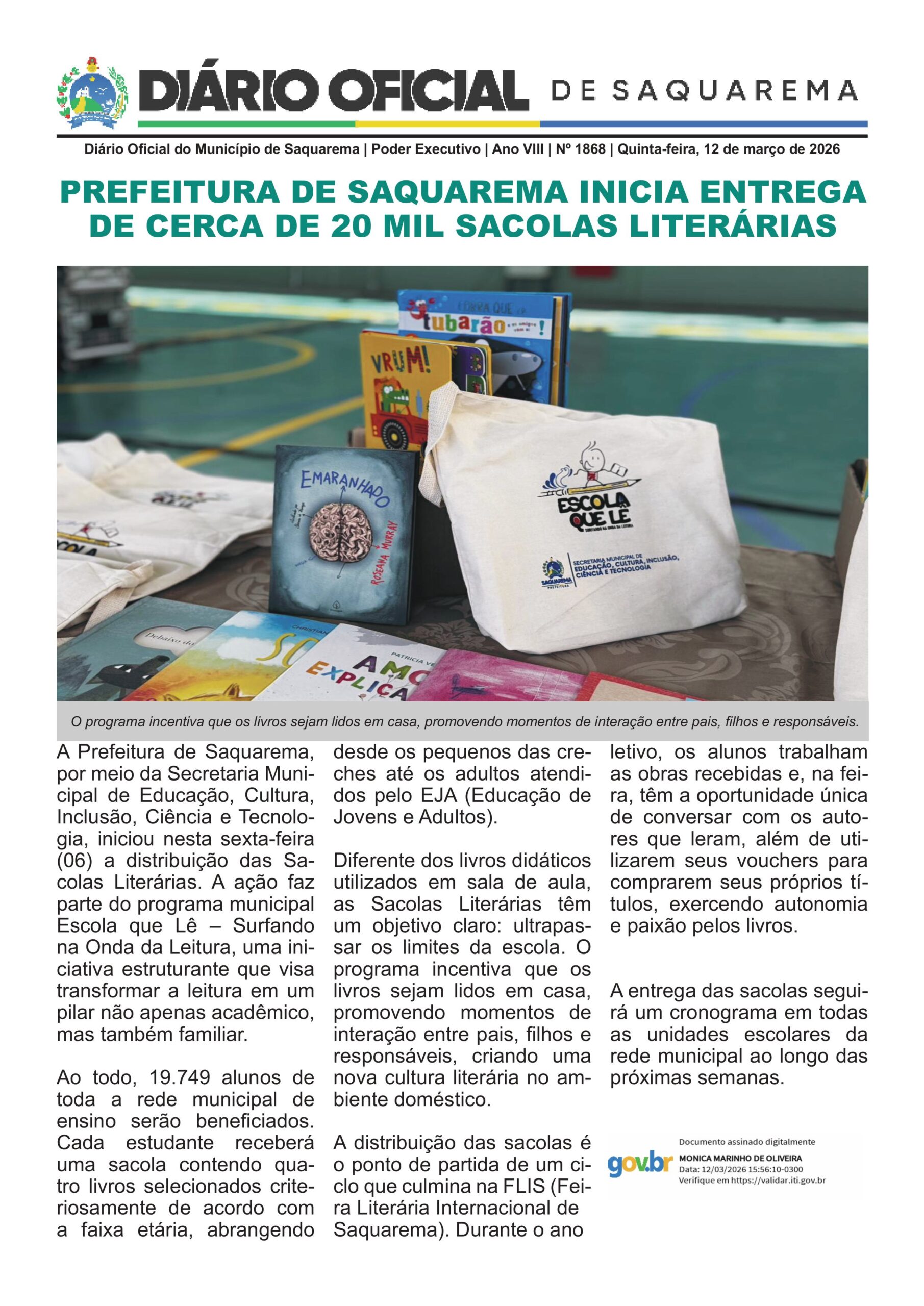 | Diário Oficial 1851/8 | | 12 de fevereiro de 2026 às 16:51 | 2026-02-12 16:51:24 |